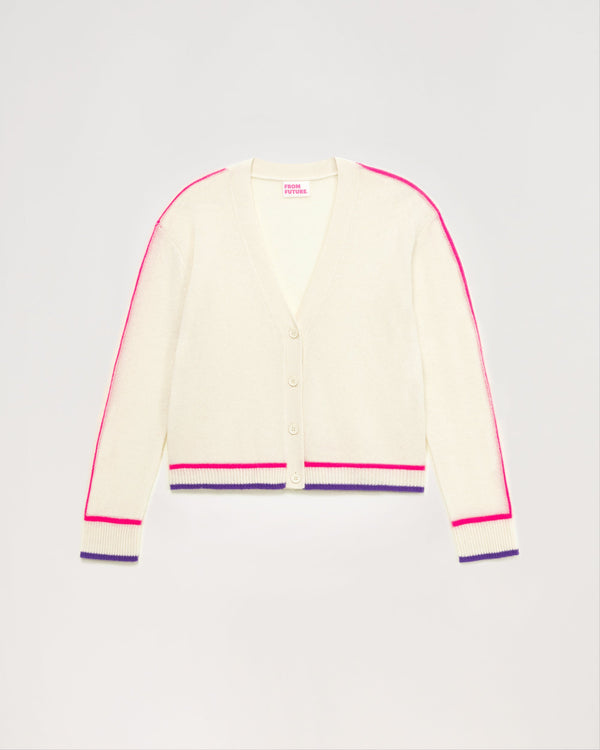 Kurze Strickjacke mit kontrastierenden Bändern 2 Drähte