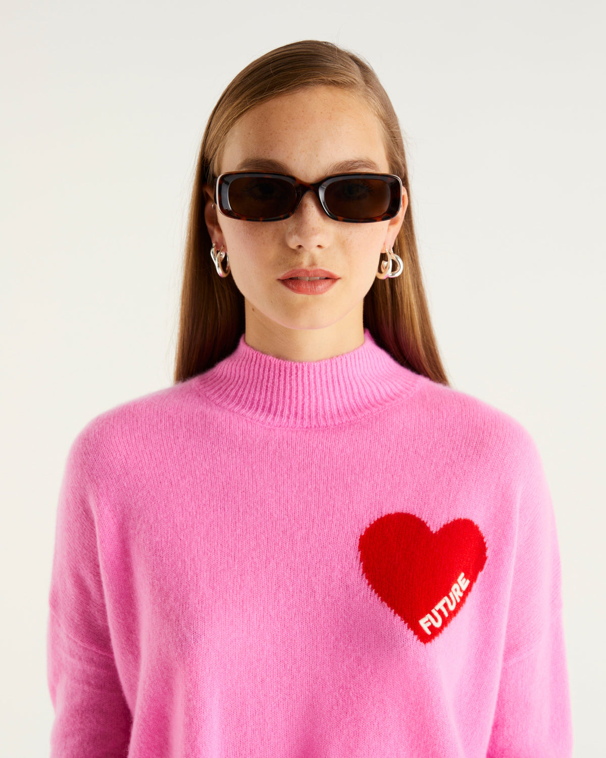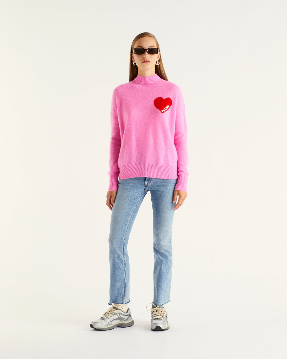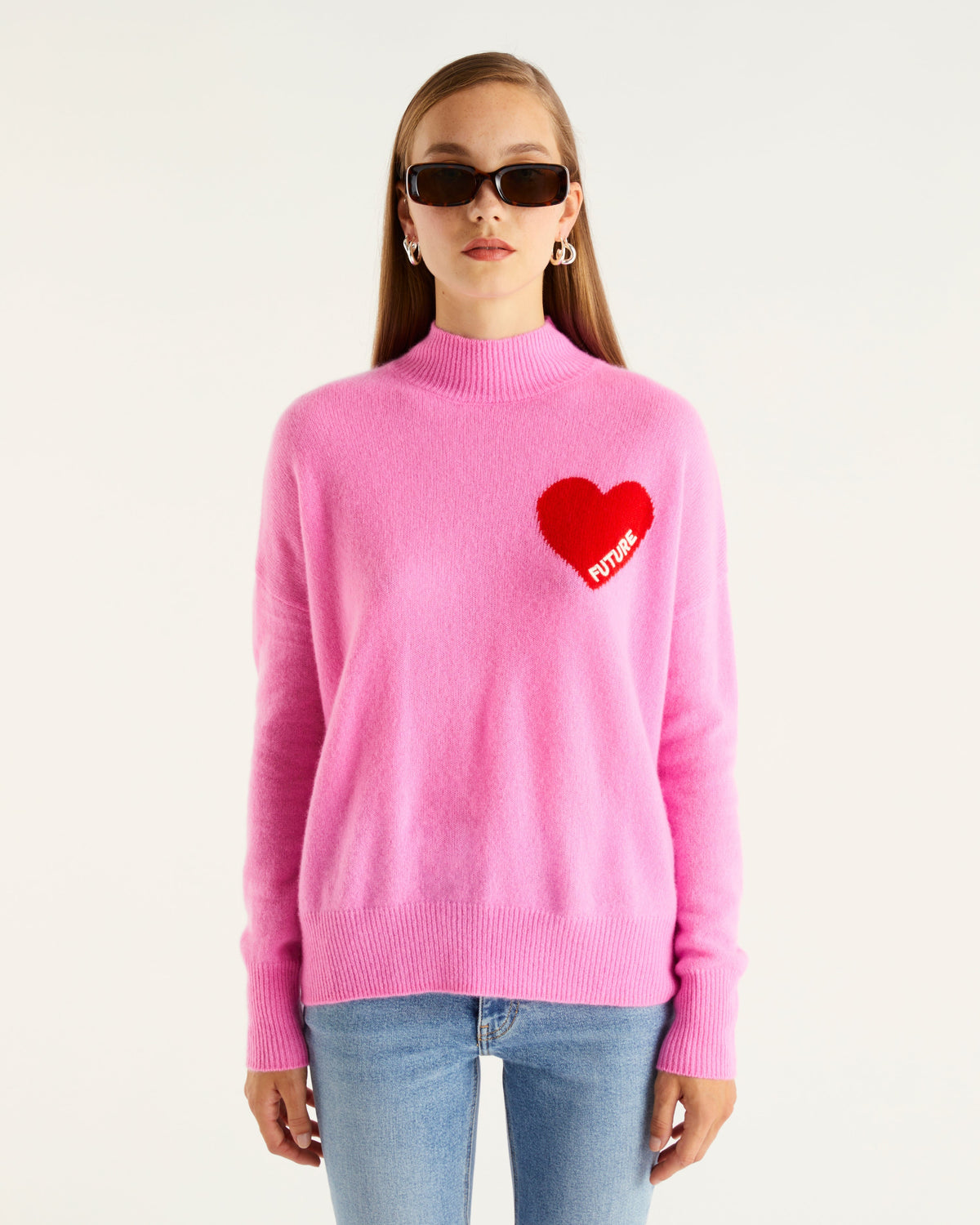 Sweater Col Montant Oversize Future Cœur - 100% Cachemire - Pretty pink