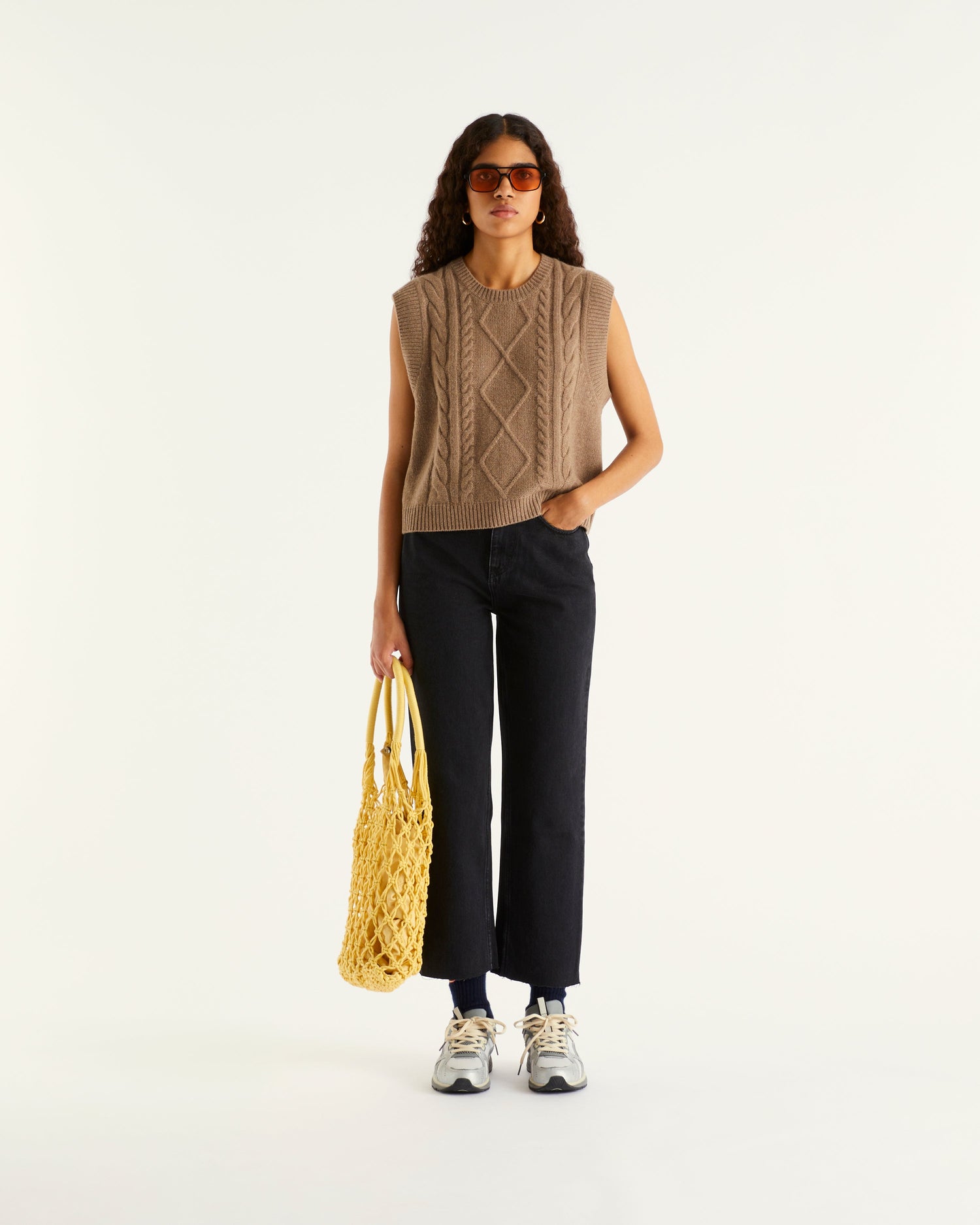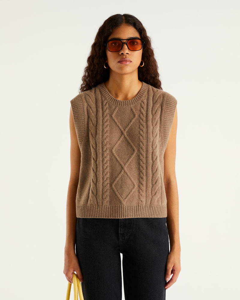 Col Rond Court Sans Manche À Torsades 6 Fils