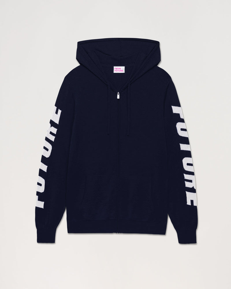 Pull Hoodie Zippe A Poches Manches Future - Laine Mérinos - Navy