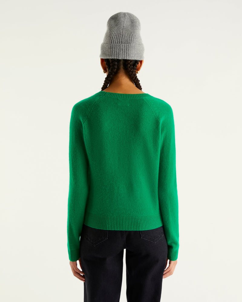 Leichter kurzer runder Hals - 100% Cachemire - Vert gazon