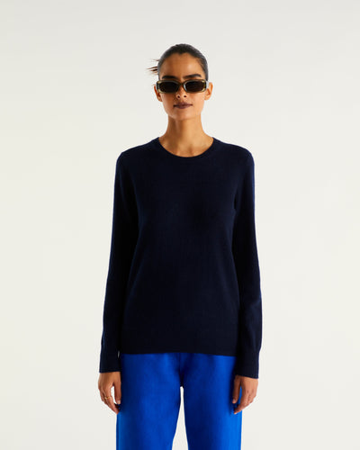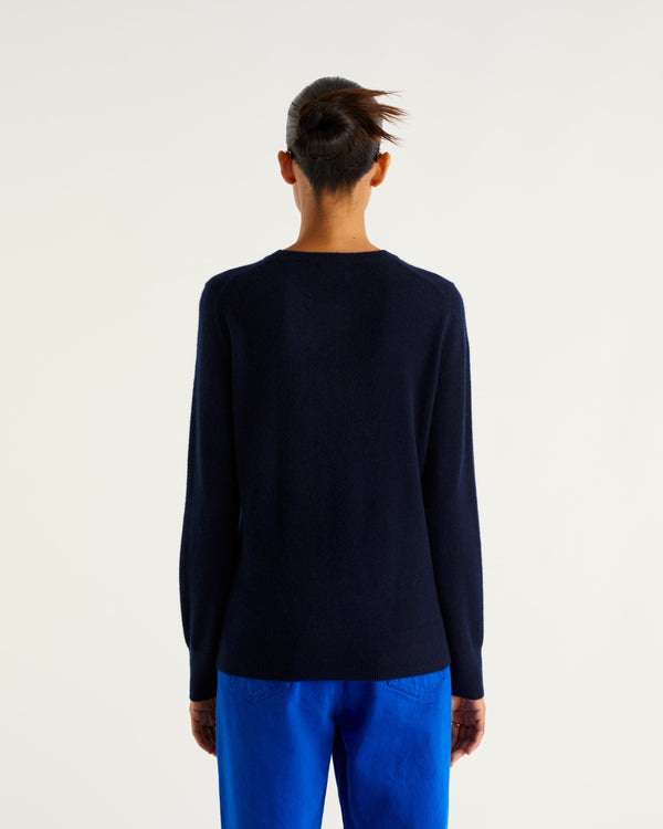 Sweater Col Rond 2 Fils - 100% Cachemire - Navy