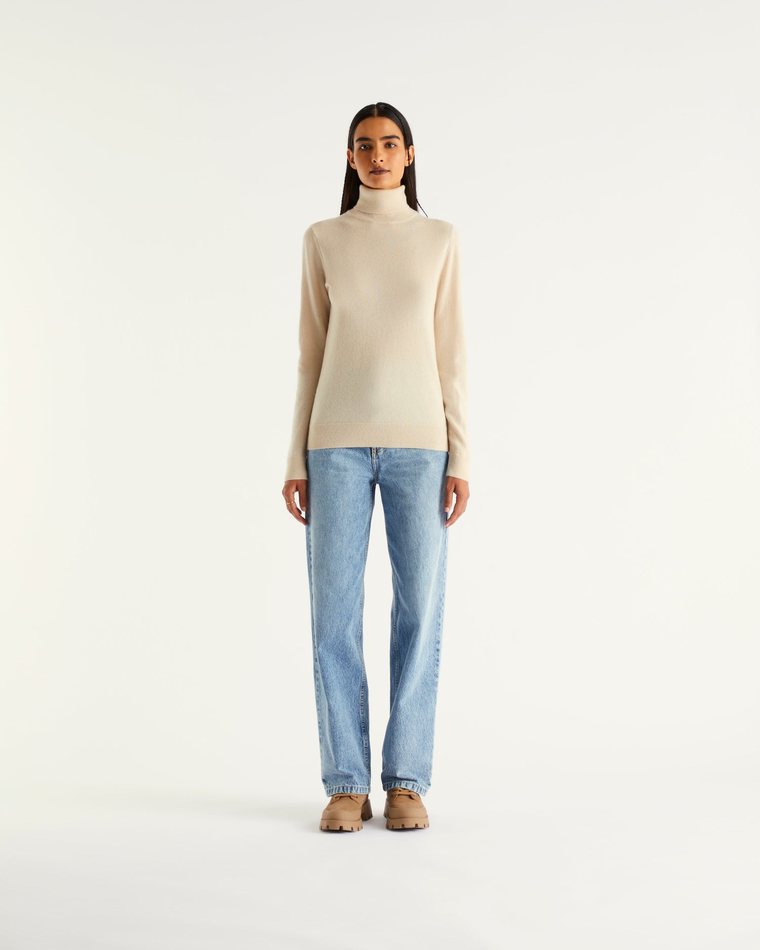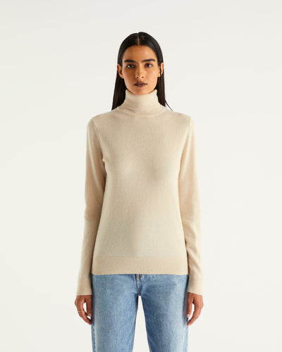 Sweater Col Roulé 2 Fils - 100% Cachemire - Sable