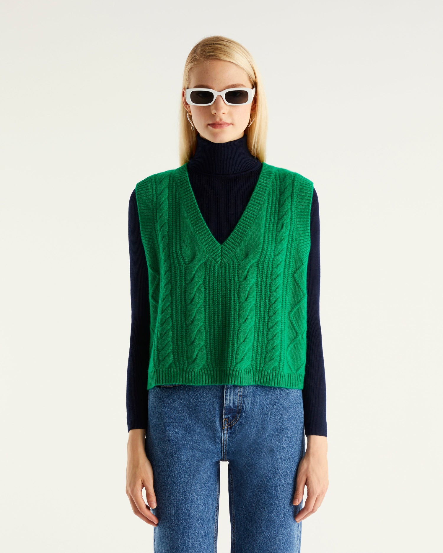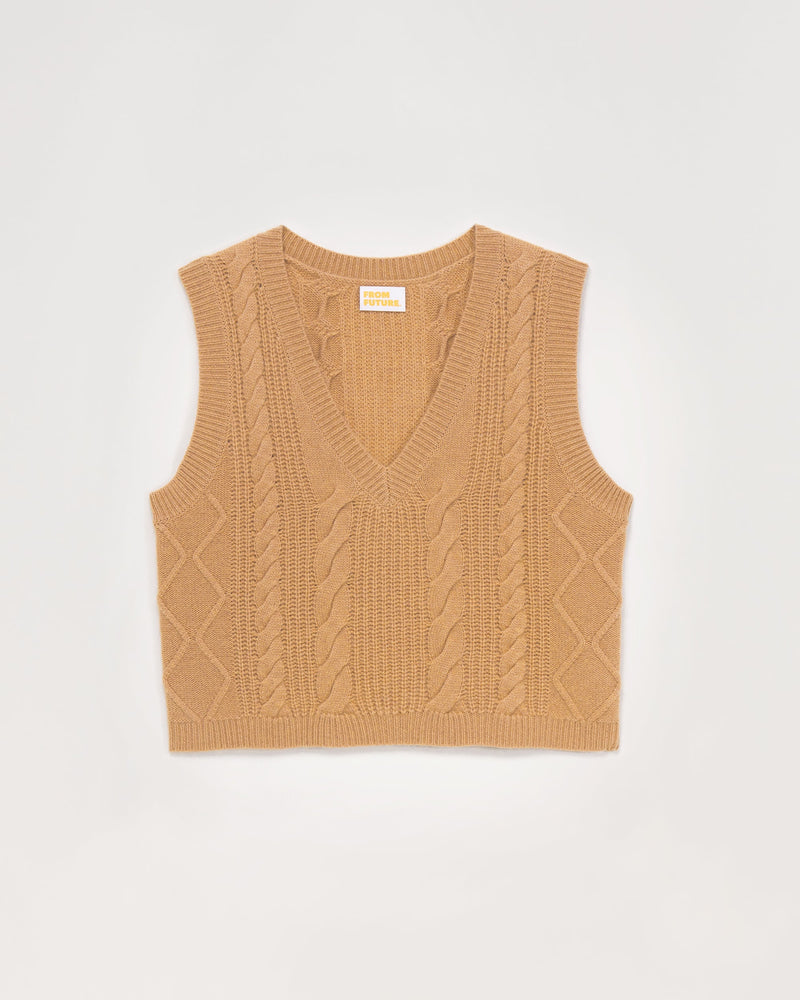 Col V Court Sans Manche À Torsades 6 Fils