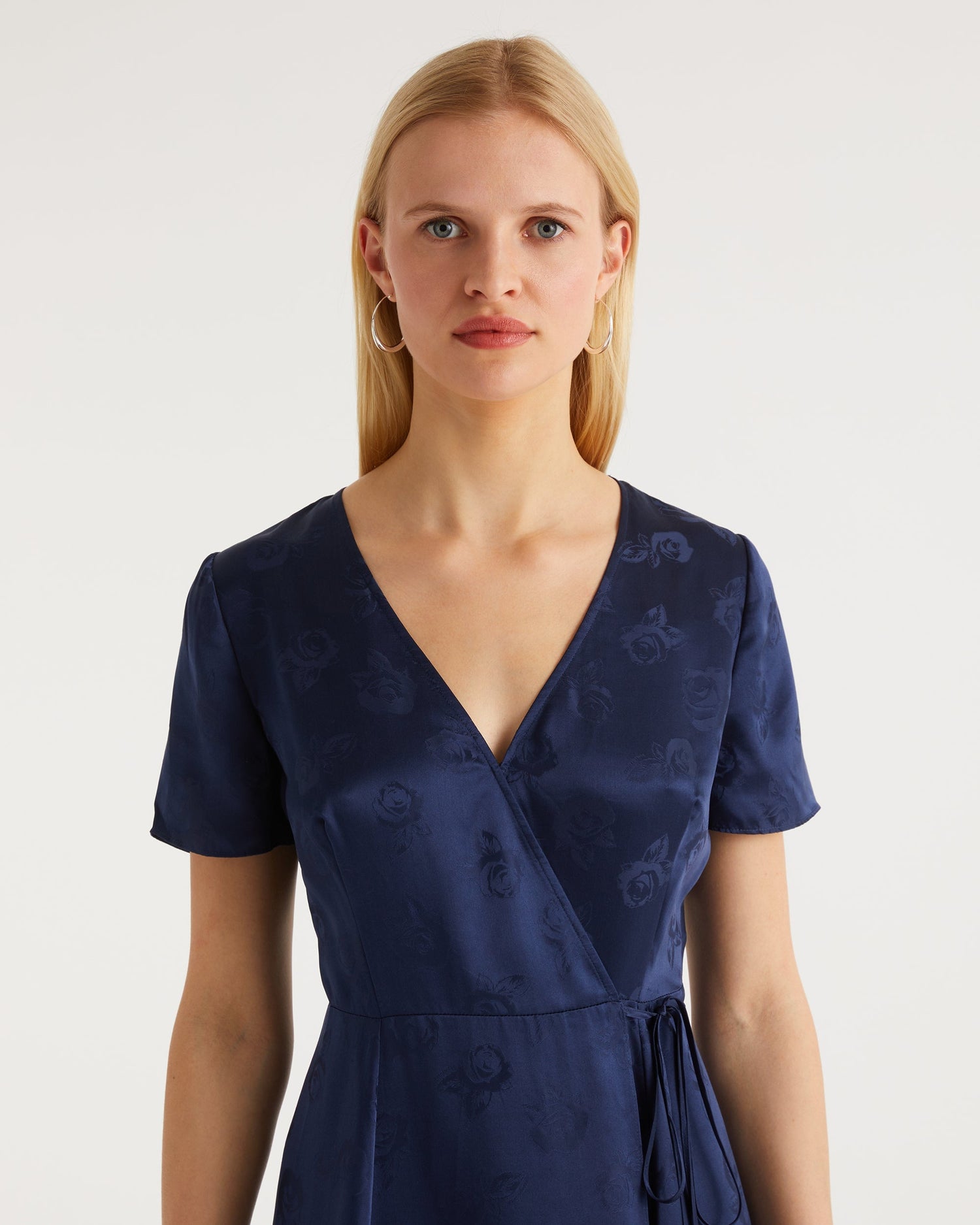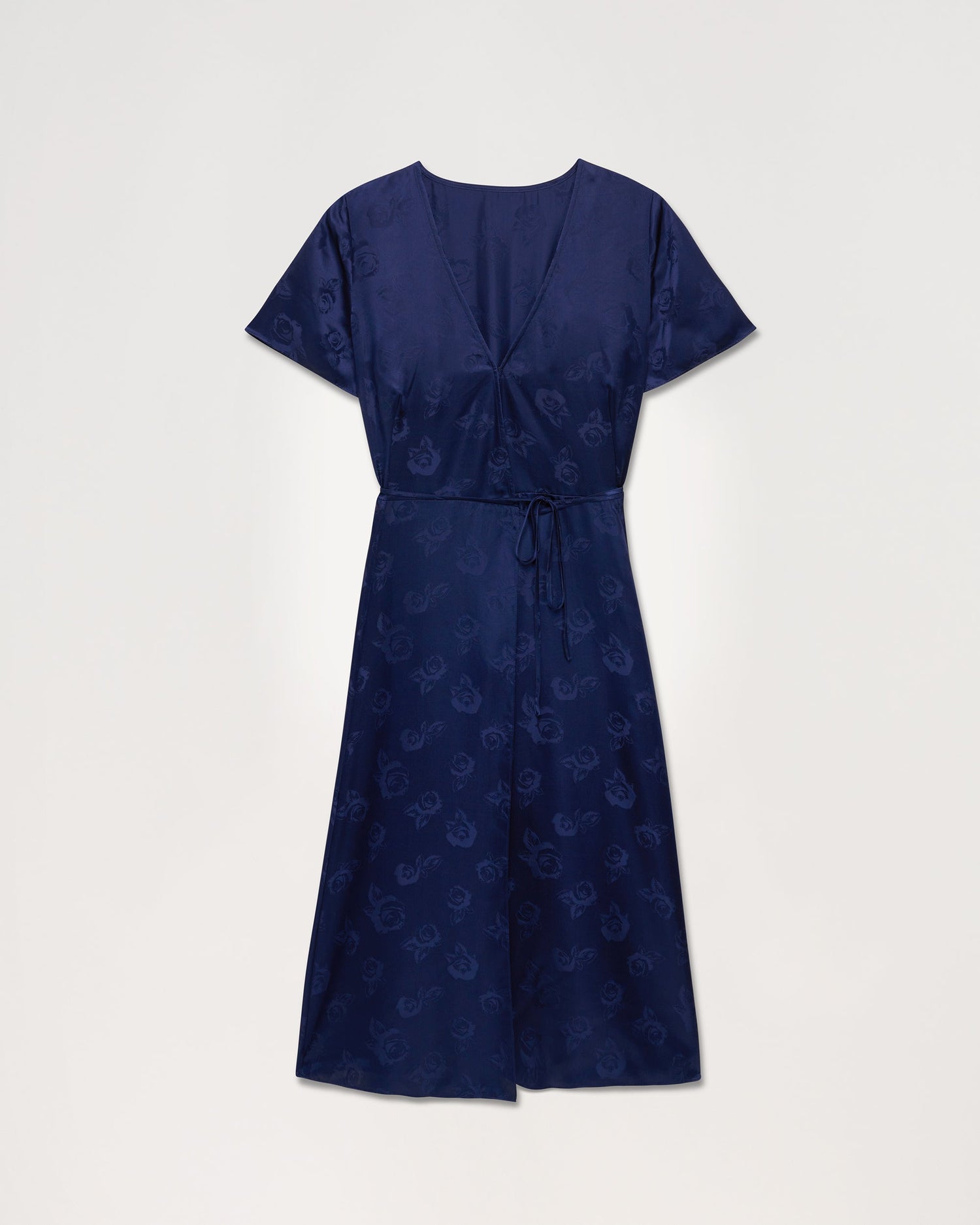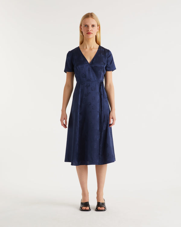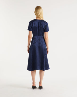 Robe Longue Manche Courte Paola - Soie - Jacquard navy