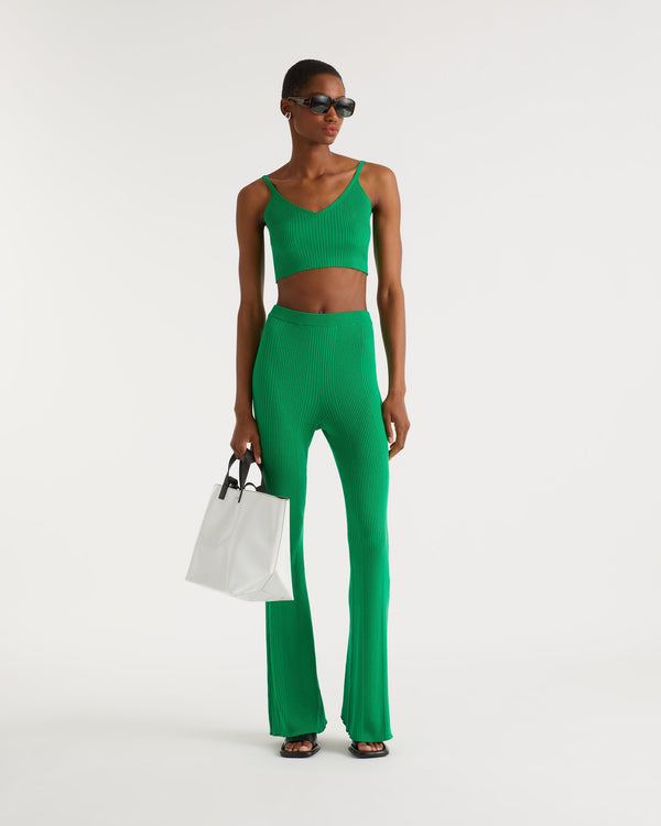 Top Brassiere A Cotes - Laine Mérinos - Summer green